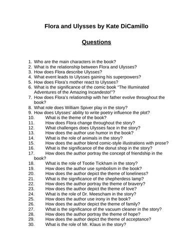 Flora And Ulysses Comprehension Questions By Chapter TeenaEbboni